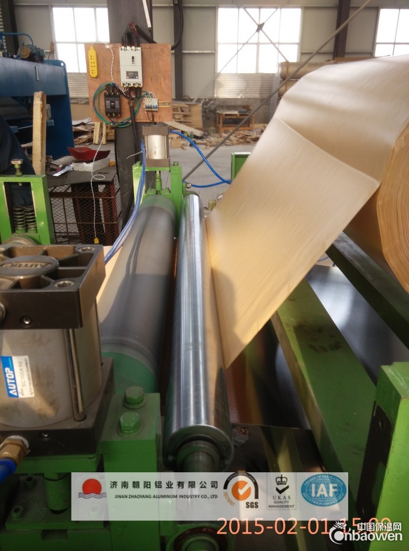 二:通过加热的方式使牛皮纸和铝卷粘合到一起。此工艺是我们朝阳铝业历经半年新近研制成功的