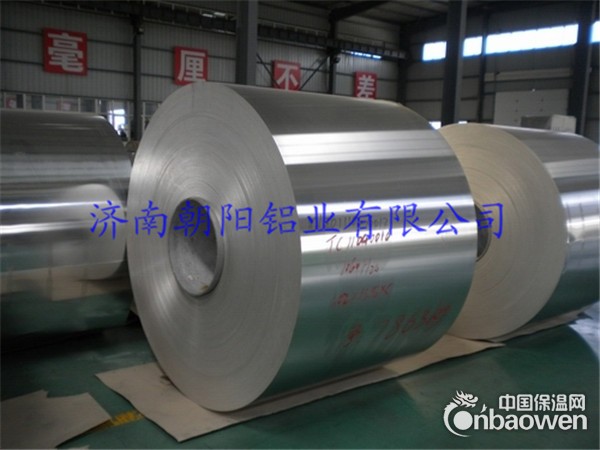 朝阳铝业有限公司专业供应各种规格厚度的保温用铝皮,厚度范围0.1-1.5mm,宽度500-1500mm,材质有1100 1060 1050 3003 3004 3A21等牌号。在大部分的施工工程中,主要采用1060牌号的,沿海或者高腐蚀场所最好是采用3003牌号。3003的铝皮在采购过程中,需方需要对产品进行严格检验,有条件可做光谱测试,以此来应对市场上以次充好,以纯铝代替合金铝卷的现象。还能根据您的要求裁切成不同长度20米 30米 50米,方便你的施工。特别提示::在运输及保存过程中,客户一定要在干燥通风的室内环境下保存,避免雨淋及潮湿环境对铝皮产生的侵蚀。 ‘ 铝皮压花板是在光铝上通过压花机,压出不同花色的图案,有虫子纹(橘皮纹)(菱形纹)能起到增加强度,增加韧性,使之美观耐用 铝卷亦称铝皮,多用于电厂 化工厂 炼油厂管道罐体保温之用。厚度一般0.1mm以上厚度,宽度一般800-1600mm宽度,自由选择材质:1060 1050 1100 3003 3004 3104 3A21 LF21