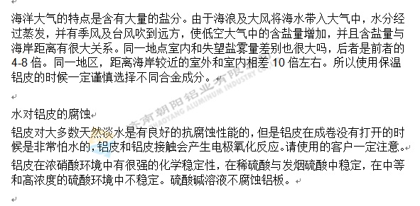 铝皮在没有打开包装和包在管道前,非常害怕受潮和淋雨,其原因是还没有与空气接触,铝皮表面未形成氧化膜(保护膜)一旦受潮和淋雨非常容易造成铝皮的腐蚀,